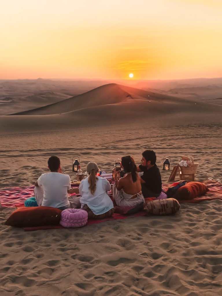 Coordinación del punto de encuentro, les brindaremos una breve inducción de seguridad previa al tour. Los participantes se embarcan en las UTV para iniciar la aventura por las dunas del desierto de Huacachina. El primer destino es un punto panorámico con vistas espectaculares de la laguna Huacachina, perfecto para admirar el paisaje y capturar fotografías memorables.